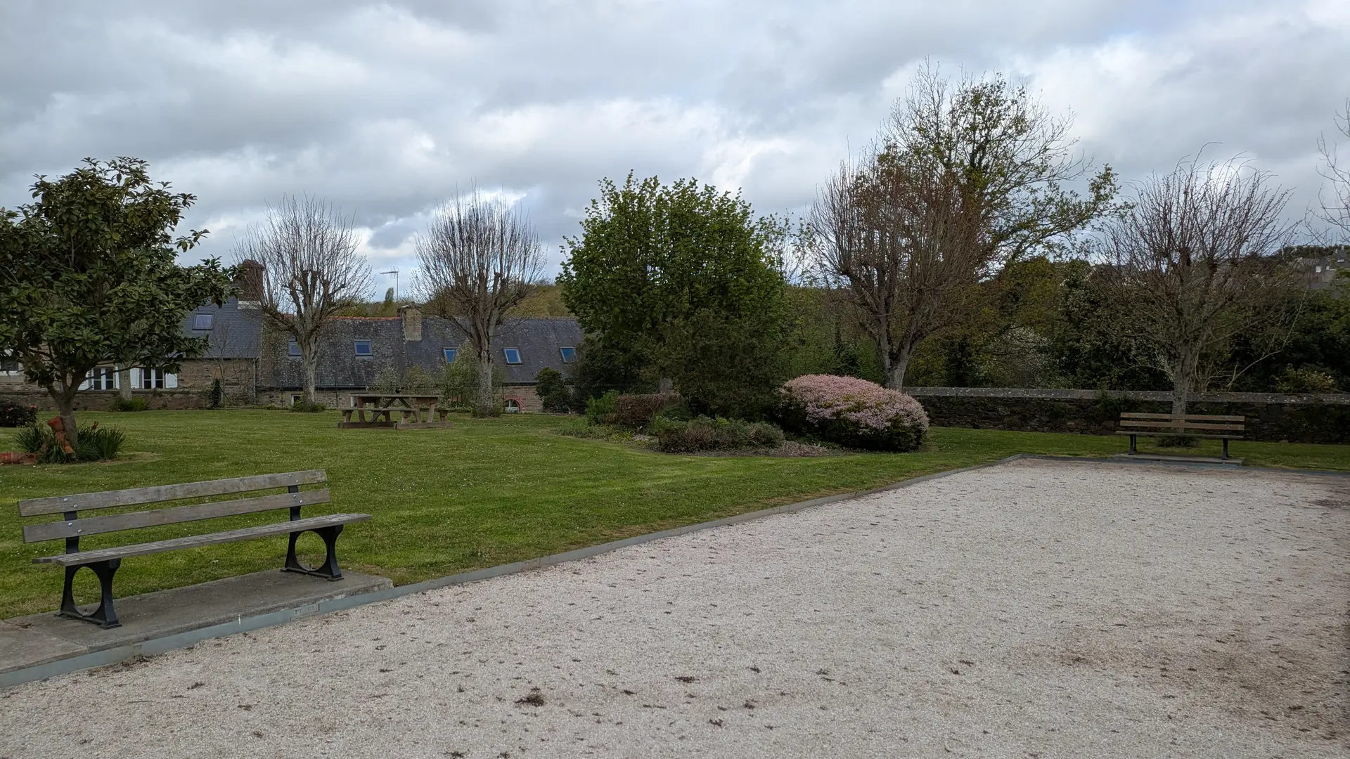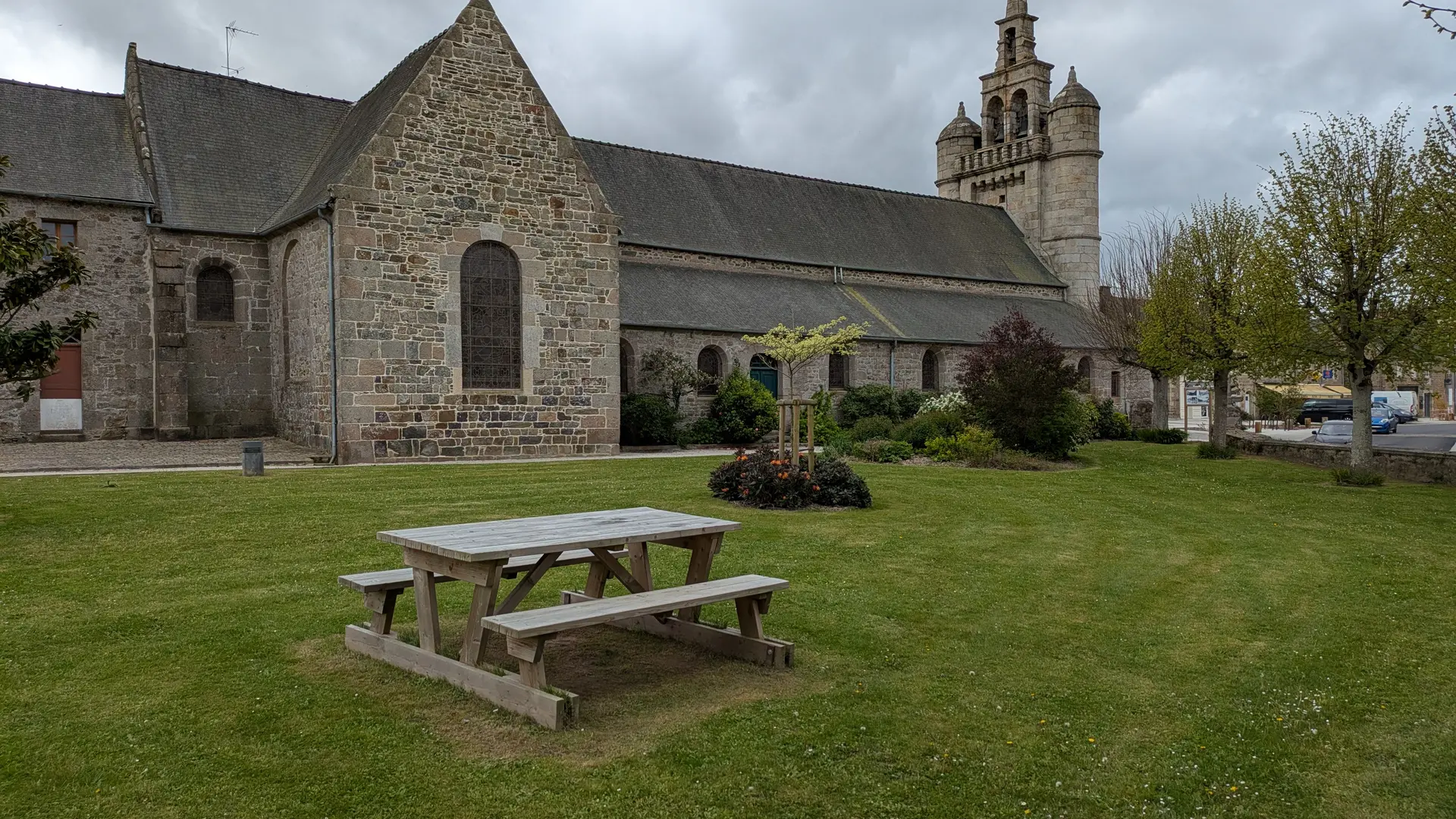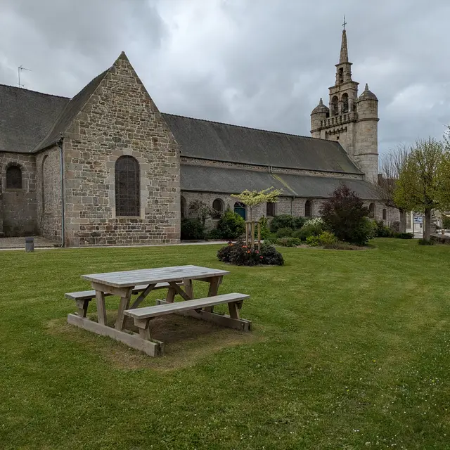 A l'arrière de l'église, une table de pique nique et des banc situés dans un espace vert arboré permettent une pause agréable. toilettes publiques à 100m au niveau de l'espace du Cèdre Bleu. Boulangerie et commerces à deux pas sur la place du centre.