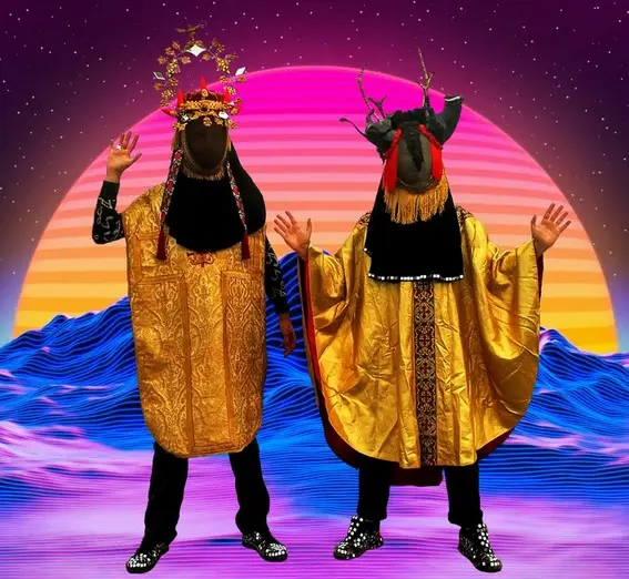 Sur scène, les musiciens arborent d’impressionnants masques de l’artiste-plasticienne Odette Picaud, apportant à leur musique pop-punk synthétique, une ambiance tribale, envoûtante et énigmatique, pleine d’énergie positive et rebelle.